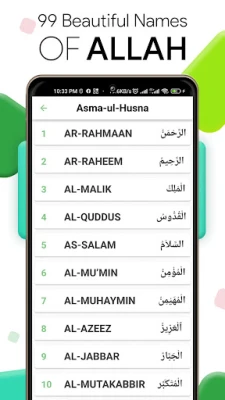 Imebuniwa kwa uzuri wa hali ya juu na michoro ya kupendeza, "Beautiful 99 ALLAH Names" inakupa uzoefu wa kusoma usio na kifani. Fonti bora za Kiarabu zinahakikisha usomaji rahisi na wa kupendeza machoni. Urambazaji ni rahisi na wa haraka, ukiwa na chaguo la kubadili kati ya majina bila shida. Kinachofanya programu hii kuwa bora zaidi ni uwezo wake wa kufanya kazi nje ya mtandao; hakuna muunganisho wa intaneti unaohitajika, ikimaanisha unaweza kuendelea na safari yako ya kujifunza wakati wowote na mahali popote. Inaoana kikamilifu na vidonge na simu zote za Android, na inapatikana bure kwa kila mtu.