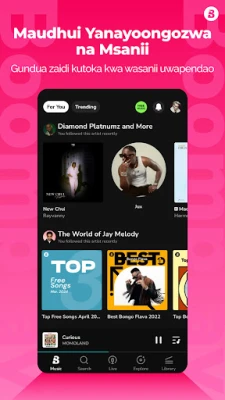 Zaidi ya burudani ya muziki, Boomplay inajivunia kuwa jukwaa linalowawezesha wasanii. Kila mara unaposikiliza, kushiriki, au kutoa maoni, unawaunga mkono moja kwa moja wasanii unaowapenda, ukiwasaidia kufikia chati za kimataifa kama Billboard. Chunguza nyimbo kutoka kwa wasanii zaidi ya milioni 6.7 na ujitumbukize katika aina mbalimbali za muziki, kuanzia Bongo Flava, Singeli, na Afropop hadi Amapiano na R&B. Pia, Boomplay inafanya kazi kama kicheza media chako cha kibinafsi, ikikuruhusu kucheza faili zako zote za sauti na video zilizohifadhiwa kwenye kifaa chako, ikikupa udhibiti kamili wa maudhui yako.
