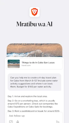 Ndani ya Brave, utagundua zana zenye nguvu zinazoboresha kila mguso wako wa mtandaoni. Jitambulishe na Brave Leo, msaidizi wako mahiri wa Akili Bandia, anayepatikana bila malipo ndani ya kivinjari. Leo yuko tayari kujibu maswali tata, kutafsiri lugha mbalimbali, na kutoa majibu ya haraka. Zaidi ya hayo, Injini ya Utafutaji ya Brave inatoa utafutaji wa kweli wa faragha, huru na unaojitosheleza, ukihakikisha matokeo safi bila kufuatiliwa.