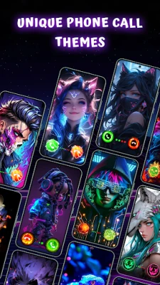 Ndani ya Color Phone: Mandhari ya Skrini ya Simu, utapata maktaba kubwa ya mandhari, ikiwa na zaidi ya miundo 5,000 ya kuvutia. Kutoka kwenye asili tulivu, miundo ya kipekee ya abstract, picha za mapenzi, mandhari ya michezo, anime za kusisimua, hadi miale ya neon inayong'aa, kuna kitu kwa kila ladha na hali ya moyo. Hii inakupa uhuru kamili wa kulinganisha skrini yako ya simu na mtindo wako wa kibinafsi na hisia zako za wakati huo. Zaidi ya hayo, unaweza kuchagua kutoka miundo mbalimbali ya vitufe maridadi vya kupokea na kukataa simu, kuanzia vile vya kawaida hadi vile vya kuthubutu na vyenye rangi nyingi, na hivyo kuunda mguso wa kipekee unaolingana na mandhari yako.