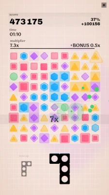 Kavel haikupi mchezo mmoja tu, bali inakuletea hali tatu tofauti za uchezaji iliyoundwa kukidhi hisia zako zote. Katika Hali ya Kawaida, una muda wa kutosha kupanga mikakati yako na kutekeleza kwa utulivu wako, huku ukiamrisha maumbo 50 yanayofuata. Unatamani kasi? Hali ya Matatizo itakusukuma kwenye kilele cha milima ya alama ndani ya sekunde 90 fupi, bila nafasi ya kufikiria bali kupanda tu. Na kwa wale wanaotafuta kutoroka kutoka msongo wa maisha, Hali ya Utulivu inatoa mahali pa kujifurahisha bila mwisho wala majukumu, kama vile kufinya vifaa vya kufungashia vilivyojawa na hewa.